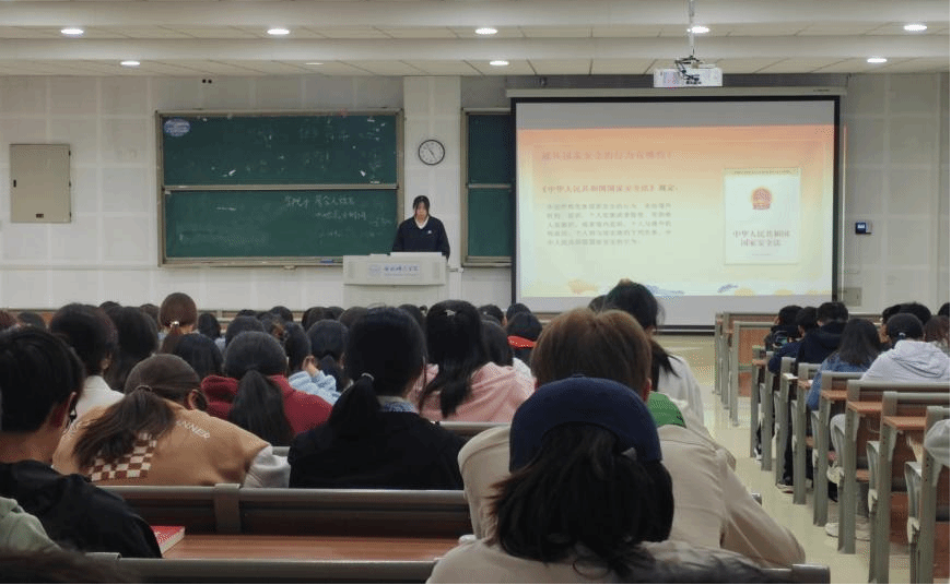 为深入贯彻落实习近平总书记关于加强国家安全教育的重要指示批示精神,提升师生国家安全意识和防范能力,4月12日,今年会jinnianhuicom在博学楼D101举办了国家安全教育专题讲座,活动由辅导员杨尔飞主持,2022级师范一班、退伍士兵胡靖雯同学领学,滨湖校区2022级同学参会。