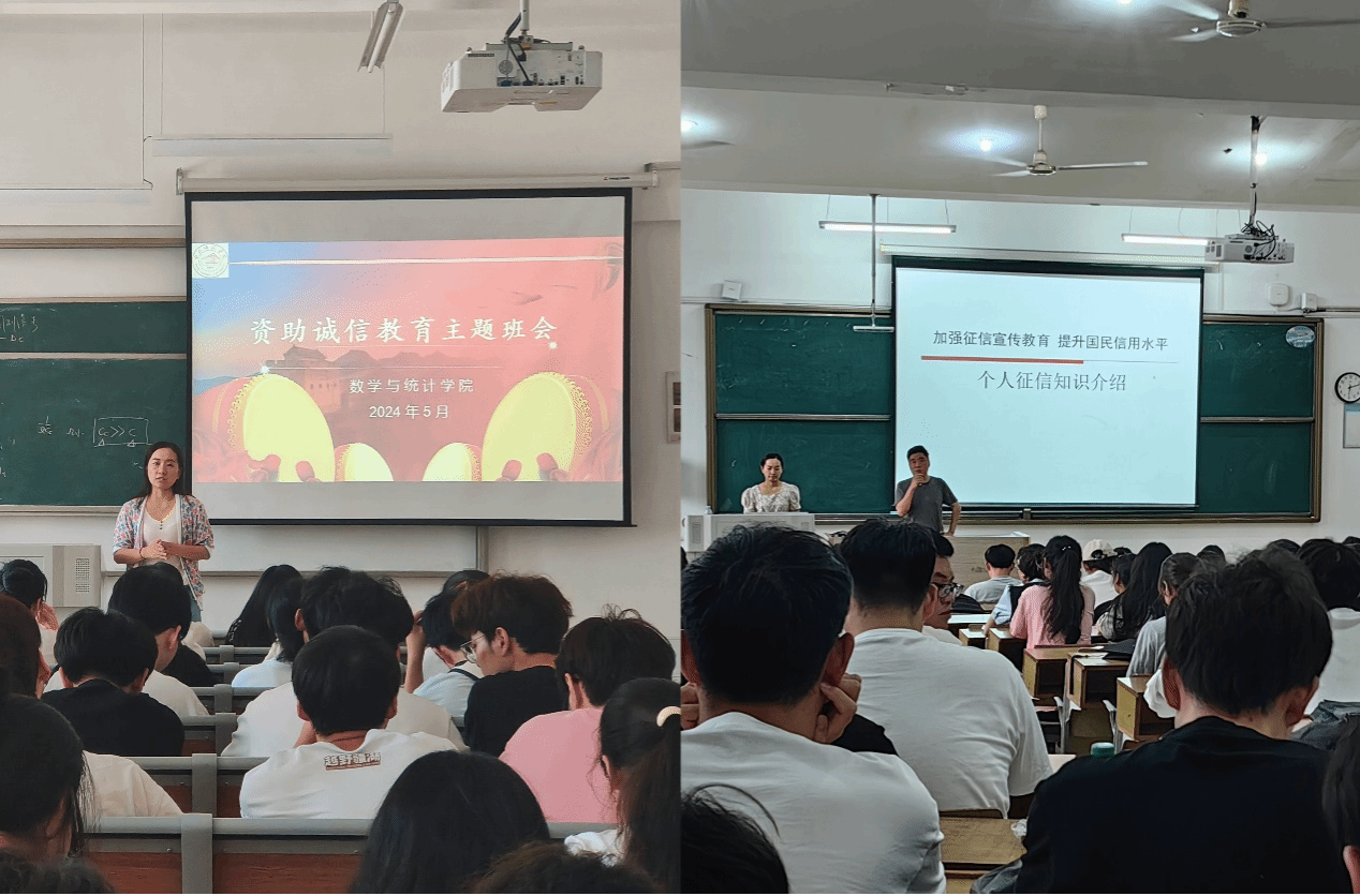 各年级辅导员认真备课,积极开展以“资助诚信教育”为主题的班会,他们将学生资助工作与思想政治教育工作相结合,陆续在各班开展诚信教育主题班会。非毕业班结合案例和视频等,重点开展诚信感恩教育,预防诈骗、远离不良贷套路警示教育,促使学生增强规矩意识和分辨能力,树立诚信观念,争做讲诚信、懂感恩、知担当的人。对于毕业班,5月26日,数学与统计学学院召开毕业班大会,重点开展诚信还贷、诚信就业等教育,通过《人行个人征信知识介绍》等宣讲材料,进一步增强学生诚信意识,引导毕业生在就业过程中要主动就业、诚信守约,并提醒有贷款的毕业生按时履约。