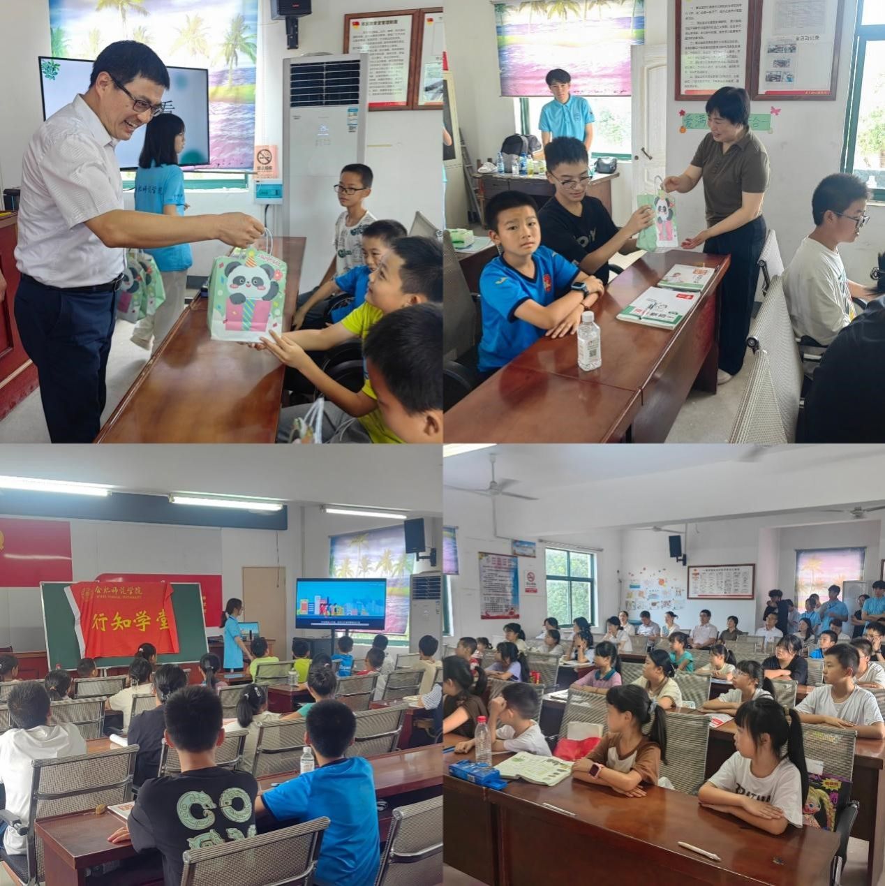 周端明一行观摩了“小先生”上的安全教育课,并将带去的精美文具送给了可爱的孩子们。课后,周端明等人与“小先生”们亲切交谈,详细询问了团队组成、课程安排和活动开展情况,关心询问他们在行知学堂中的感受与收获,并对学堂建设和课堂教学进行了指导,鼓励小先生们结合自己的专业特色为孩子们带去形式多样、内容丰富的教育。希望他们在暑期社会实践中,既服务家乡,又锻炼才干,增长见识。同时他还叮嘱小先生们要牢记习近平总书记的要求和嘱托,弘扬教育家精神,严守教师道德,陶冶道德情操,努力提升自我修养,通过实践不断提升自己的专业能力,办好让学校和家长都满意的行知学堂。
