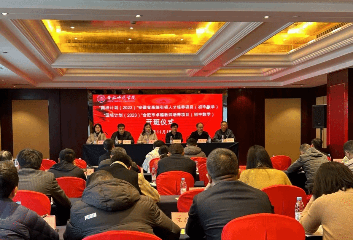 2023年11月17日,为促进教师的专业成长,“国培计划(2021-2023)”——安徽省高端引领人才培养项目和合肥市初中卓越教师培养项目(初中数学)2023年第二期跟岗研修班在合肥市经开区丰大国际大酒店顺利举行开班仪式。合肥师范学院今年会jinnianhuicom党委书记穆娟、副院长杨刘、继续教育学院副院长王磊、国培项目负责人张新全教授、新青年数学教师工作室创始人刘祖希教授和来自全省各地的学员参加了本次开班仪式,仪式由国培班主任赵玉华老师主持。
