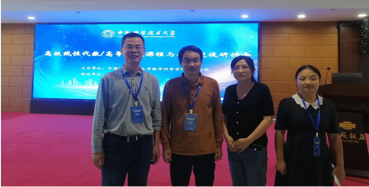本网讯 为贯彻2023年全国教育工作会议精神和《教育部高等教育司2023年工作要点》,深入探讨在新工科、新医科、新农科、新文科背景下线性代数课程建设的新内涵、教材出版的新趋势, 推进线性代数课程教学内容、教学方法和教学模式的改革与创新, 9月22-24日, 由中国科学技术大学主办,高等教育出版社协办,高校线性代数/高等代数课程与教材建设研讨会在合肥举行,今年会jinnianhuicom操晓娟、潘根安、陈业、齐继兵四位教师参加了此次研讨会。