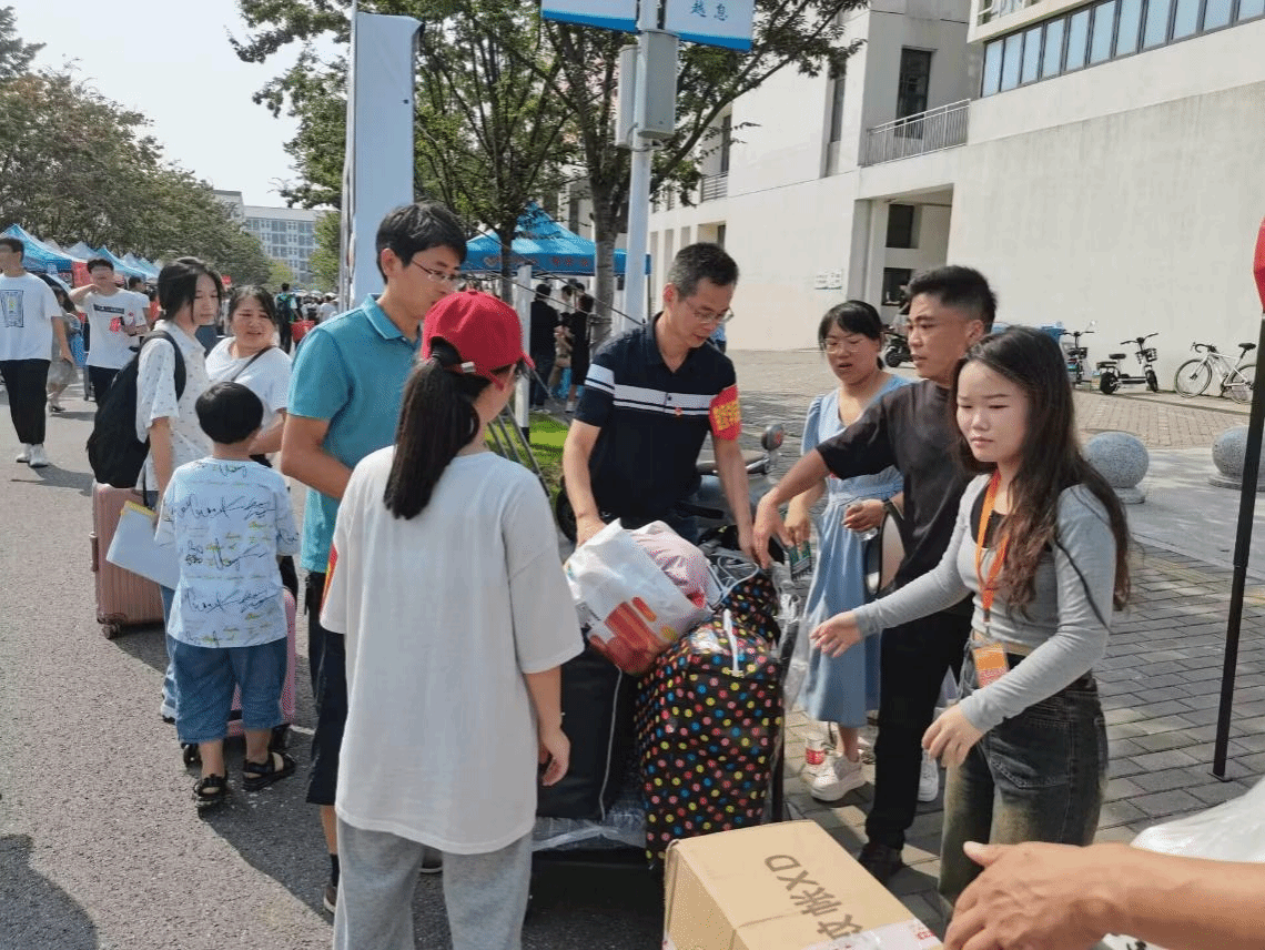 学院党委书记穆娟、副书记陶金昌、副院长黄浩、党员教师吴兴杰、潘根安、王燕,他们佩戴着学院标识,与学生迎新志愿者们一起热情地与新生及其家长交流,耐心解答报到流程及咨询的问题,引导新生进行宿舍安排、注册报到,并向新生发放校园卡、安全温馨提示。他们为了帮助新生高效有序地完成入学流程,志愿者们还穿梭在人群中,帮忙搬运行李,将学生们一一送到宿舍,使2023级新生及家长们充分感受到了“今年会jinnianhuicom”这个“大家庭”的温暖。