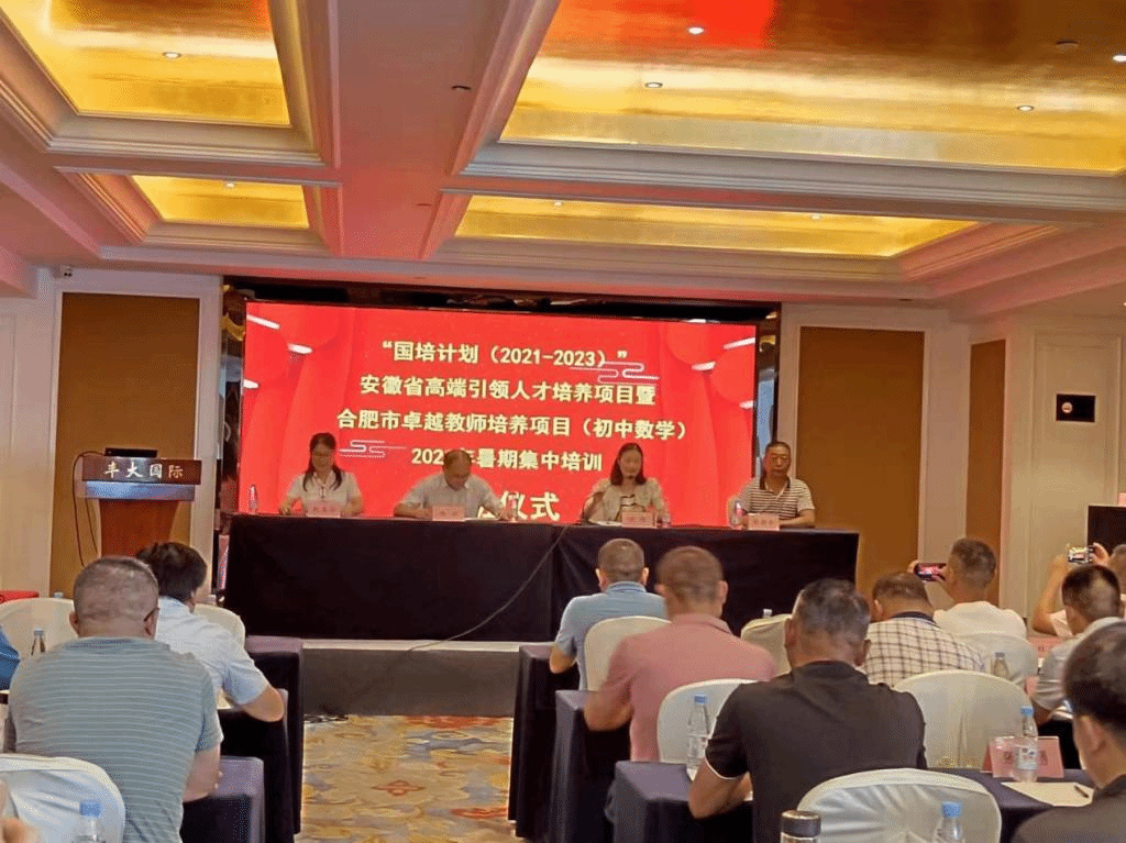 本网讯 夏意正浓时,今朝最美好,研修促提升,聚力再前行。2023年7月26日上午,安徽省“国培计划(2021-2023)”——安徽省高端引领人才培养项目和合肥市初中卓越教师培养项目(初中数学)暑期集中培训在合肥市经开区丰大国际大酒店顺利举行开班仪式。今年会jinnianhuicom党委书记穆娟、副院长杨刘以及本次国培项目负责人张新全教授和来自全省各地的全体参培学员出席了本次开班仪式,仪式由国培班主任赵玉华老师主持。