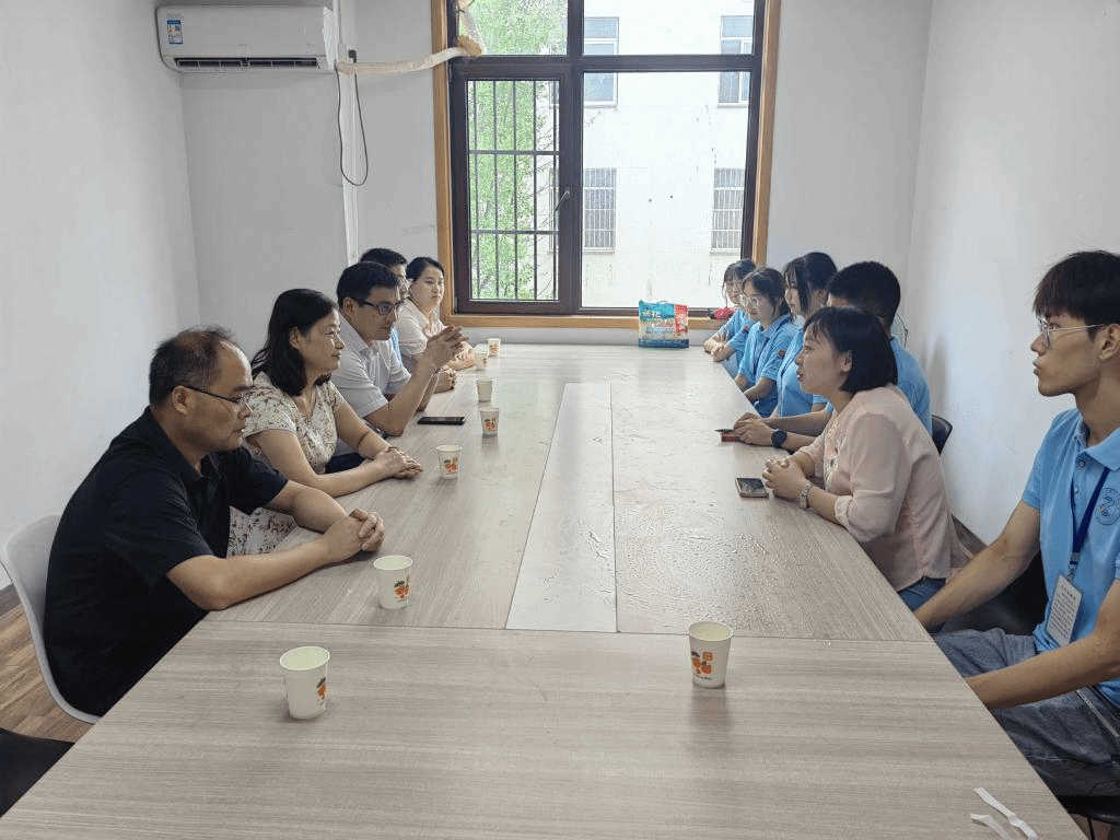 周端明一行与康复中心负责人刘洋洋、小先生代表进行了座谈交流。刘洋洋介绍了“小先生”们在康复中心的工作开展情况,高度肯定了“小先生”们的表现,对学校在康复中心举办“行知学堂”服务特殊儿童表示感谢。“小先生”们分别汇报了参加学堂的体会和收获,表示要知行合一,在中心专业教师的指导下,用耐心细心爱心服务好特殊儿童。