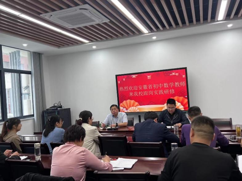 开班仪式上,孙振坤和孙克君分别对远道而来的学员们表示热烈欢迎,并向各位学员老师们简要介绍了竹山中学和上元中学的办学历史、师资队伍、学科建设和人才培养等基本情况和教育理念,并希望通过本次培训的契机,能为安徽省初中数学教育教学的发展助力,并与安徽省基础教育开展更为广阔的合作交流。张新全向承担本次跟岗实践研修的两所学校表示由衷的感谢,并对本次研修的主题、意义及课程设置等做了简要介绍,期望学员们能珍惜难得的学习交流机会。