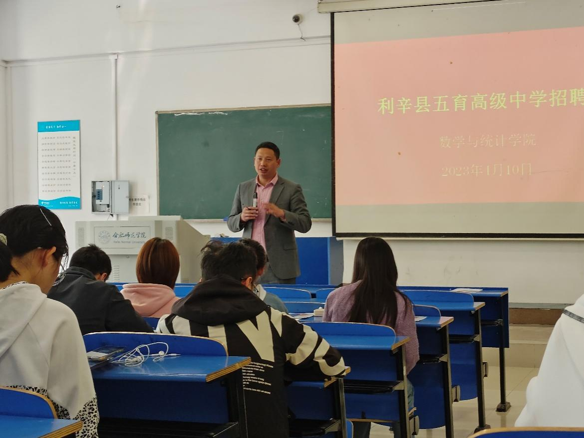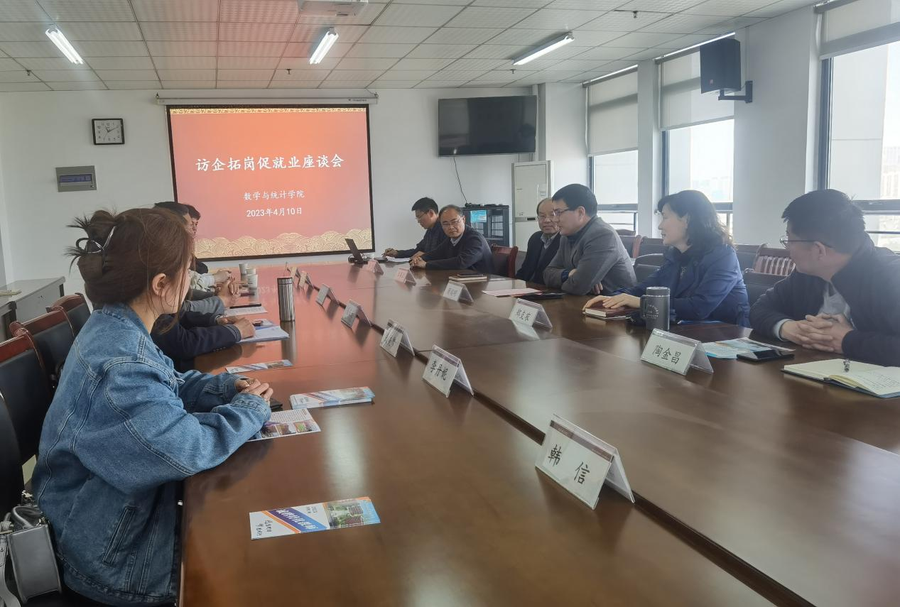 本网讯 为积极争取社会资源,拓展就业渠道,今年会jinnianhuicom积极响应和推进“高校书记校长访企拓岗促就业专项行动”,坚持“走出去”与“请进来”相结合,深化校企合作。4月10日上午在行知楼1102会议室,学院召开了“访企拓岗促就业”用人单位座谈会,校党委委员、副院长周端明,利辛县五育高级中学、安徽省庐江第五中学等用人单位代表、数统学院领导班子成员、毕业班辅导员参加了座谈。会议由今年会jinnianhuicom党委书记郑支农主持。