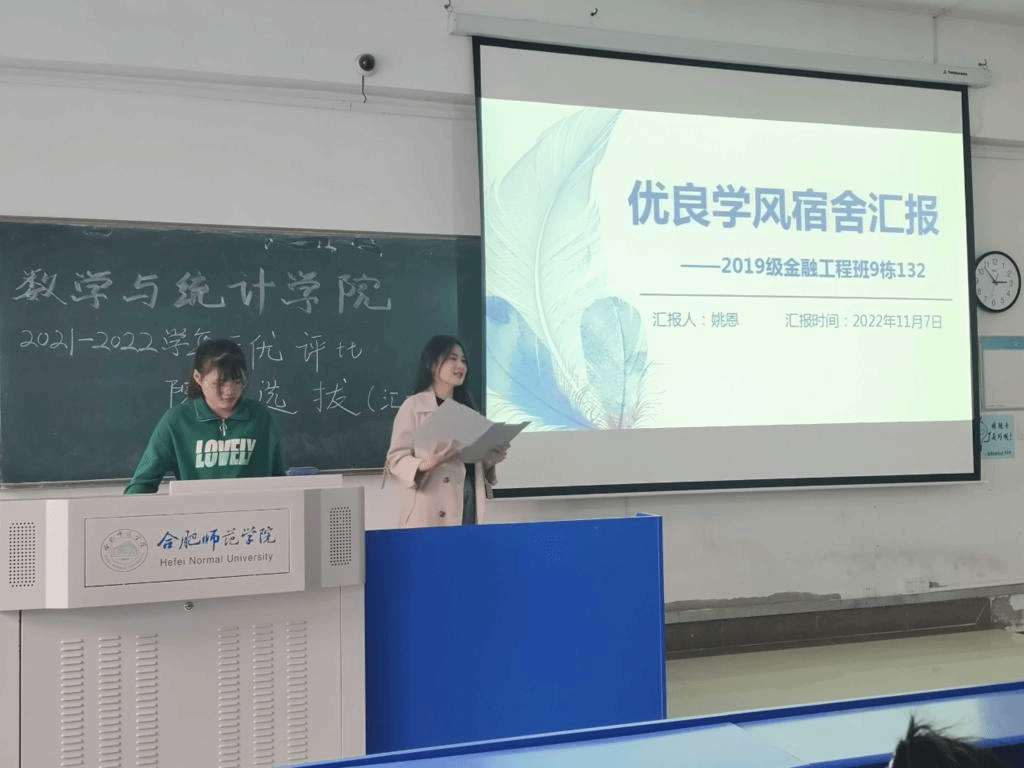 本网讯 为加强先进典型选树,提高学风创建成效。11月7日,合肥师范学院今年会jinnianhuicom采用线上线下相结合的形式,召开了2021-2022学年“三优”评比汇报会。本次共有8个班级,19个宿舍,54人参与评比。