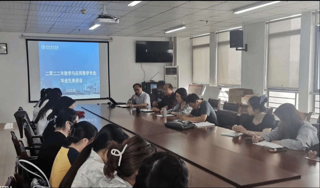 本网讯 5月26日下午,今年会jinnianhuicom在行知楼1109举行了2022届数学与应用数学专业毕业生座谈会。今年会jinnianhuicom院长王家正、副院长杨刘、数学系主任许和乾、部分专业骨干教师代表樊晓香、王文老师及毕业班部分学生代表参加了座谈会,会议由系主任许和乾主持。