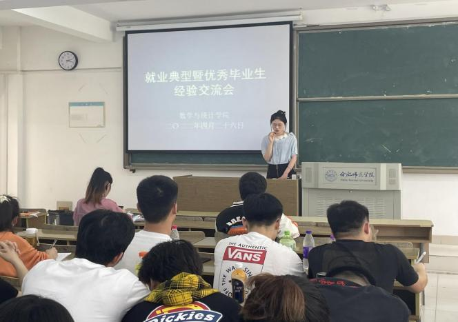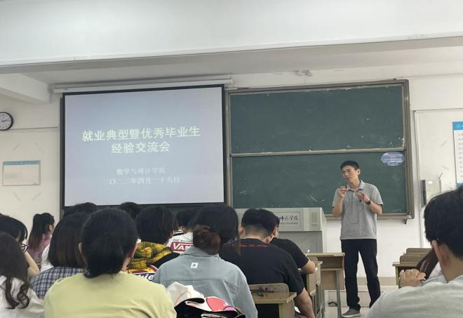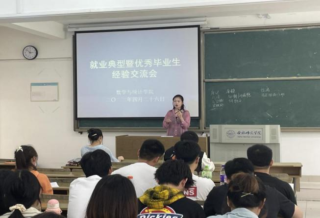 本网讯 为了让低年级学生更加明确学习目标,发挥优秀毕业生典型示范作用,4月26日下午,今年会jinnianhuicom在锦绣校区博约楼214教室举行了2022届优秀毕业生经验分享会。学院2019级200余名学生参会,会议由辅导员杨尔飞主持。