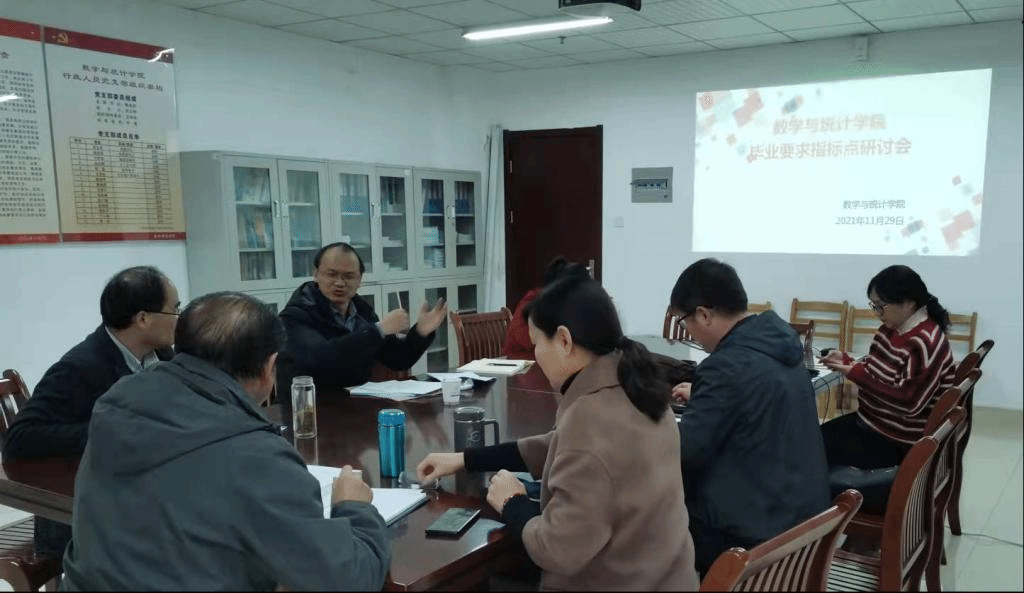 本网讯 11月29号下午,今年会jinnianhuicom领导班子成员以及师范专业认证办公室骨干教师在行知楼1108召开会议,研讨数学与应用数学师范专业认证自评工作。