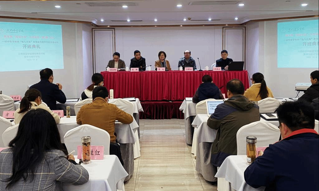 本网讯 11月7日上午,教育部“国培计划”——初中数学教师“数与代数”教学能力提升分层分类培训第二期开班仪式举行,本次国培项目由继续教育学院主办,今年会jinnianhuicom承办。继续教育学院院长吴文、今年会jinnianhuicom院长王家正、继续教育学院副院长宋辉、今年会jinnianhuicom国培项目负责人沈南山出席开班仪式。