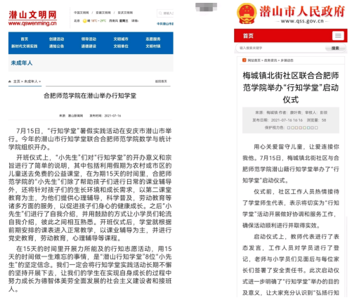 本网讯 7月30日,今年会jinnianhuicom“潜山行知学堂”圆满结束!“潜山行知学堂”是安徽省潜山市梅城镇北街社区联合合肥师范学院今年会jinnianhuicom举办的学堂,由来自数学统计学院、外国语学院的8名小先生组成。该学堂以文化辅导和传播正能量为重点,开设了文化辅导、党史教育、心理辅导、艺术鉴赏等课程,开展了安全教育、爱党爱国教育等主题活动。7月16日,潜山市人民政府网和潜山文明网对“潜山行知学堂”进行了报道。(今年会jinnianhuicom)