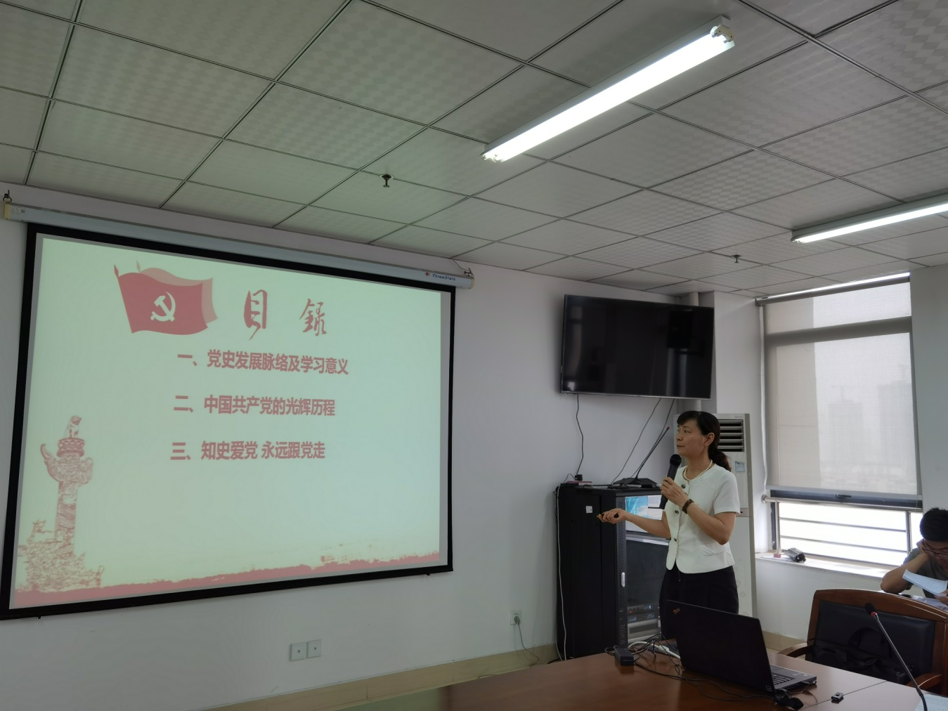 最后,郑支农强调,要深入学习贯彻习近平总书记关于党史学习教育的重要论述和在党史学习教育动员大会上的重要讲话精神,认真学习习近平总书记考察清华大学的重要讲话精神。她指出,大学教师承担着传授知识、培养能力、塑造正确人生观的职责,如何顺利完成为党育人、为国育才的光荣使命值得大家思考。希望通过本次党课让大家了解党史,勿忘入党初心,牢记党的宗旨,牢记教师的职责,坚持立德树人,在工作、学习、生活中充分发挥模范带头作用,争做合格党员,争做“四有”好老师,知史爱党,知史爱国,永远跟党走。