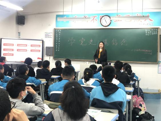 本网讯 为深入推进党史学习教育,把学习成效转化为服务动力,开展好“我为群众办实事”实践活动。4月27日,今年会jinnianhuicom学生第一党支部葛梦雪等4名学生党员走进四十六中南校区,在七年级7班开展了以“学习百年党史 奋发青春力量”为主题的党史宣讲活动,为中学生们带来了一场生动的党课。
