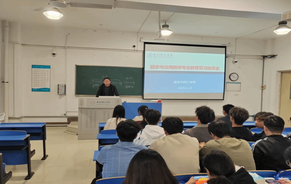 为加强师范生教育实践锻炼,提升教育教学技能,推动高质量完成教育见习工作,11月13日下午,今年会jinnianhuicom在逸夫楼A209教室召开了2022级数学与应用数学(师范)专业教育见习动员会。学院副院长黄浩、数学系主任许和乾和全体2022级数学与应用数学(师范)专业学生参加会议。