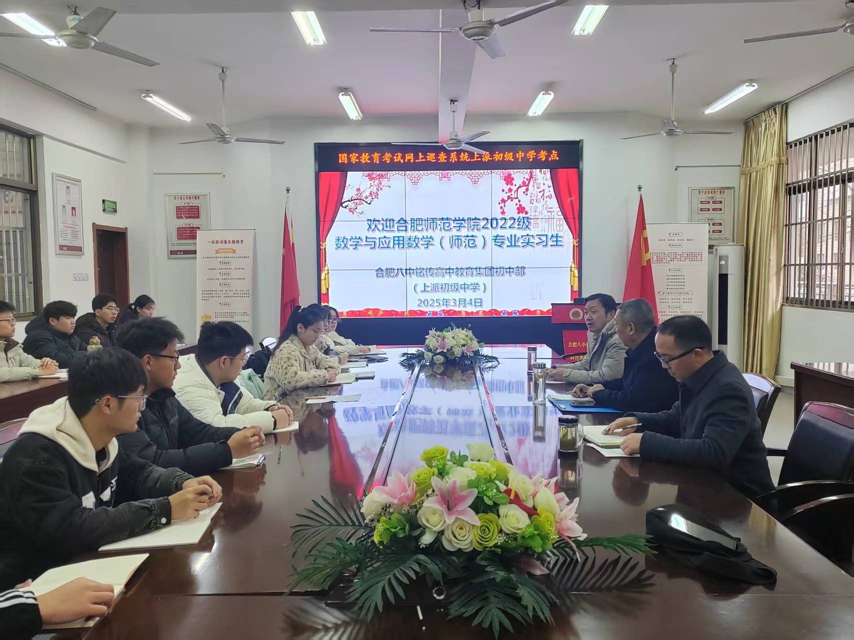 为提升师范专业学生学科素养和教学技能,提升理论素养,培养具备扎实理论知识和教学技能的优秀教师,3月4日上午,今年会jinnianhuicom2022级数学与应用数学(师范)专业19名实习生在张新全老师的带领下,赴肥西县上派初级中学开展为期14周的教育实习。教育实习见面会在上派初级中学罄心楼二号会议室举行。