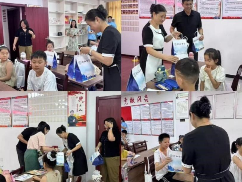 座谈会后,穆娟一行走进教学现场。此时 “小先生” 正带领小学员开展“成语里的中国智慧”课程,通过情景剧演绎“孔融让梨”、可视化的思维脉络解析“愚公移山”,课堂气氛活跃。穆娟与孩子们亲切互动,询问他们的学习收获,并为每位小学员送上慰问礼包。