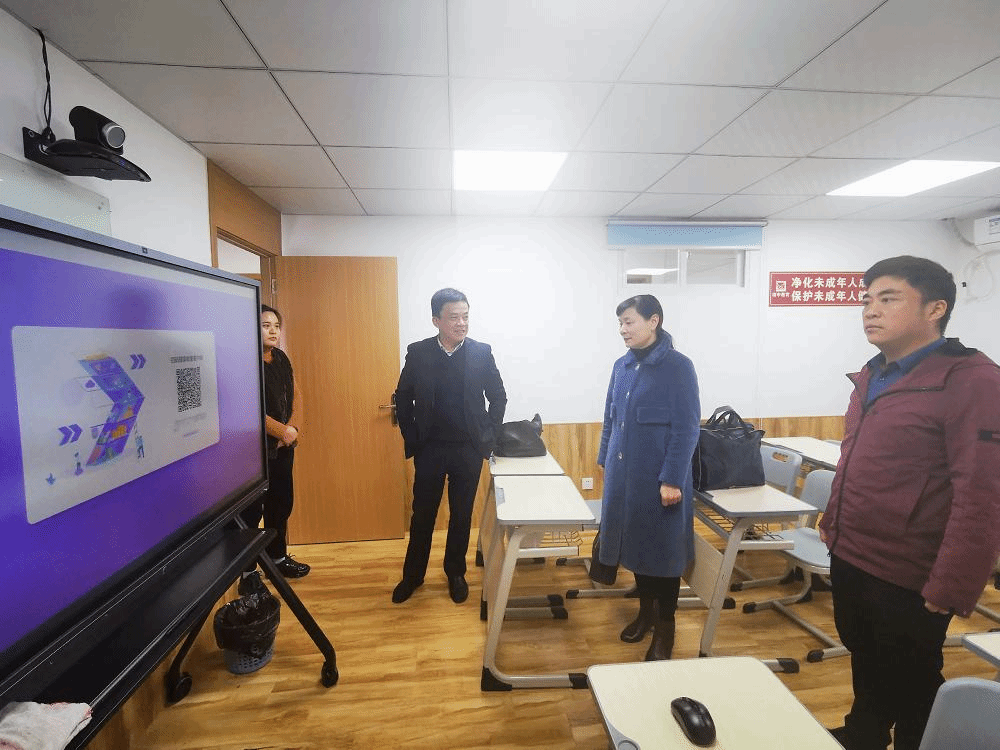 南中教育创立于2008年,是一家专业从事中小学课外辅导的教育机构。南中教育校长曹扬热情地欢迎了郑支农一行的到来,曹扬首先带领大家参观了南中教育的学校环境,重点介绍了公司智慧教室和互联网教学平台的建设情况。