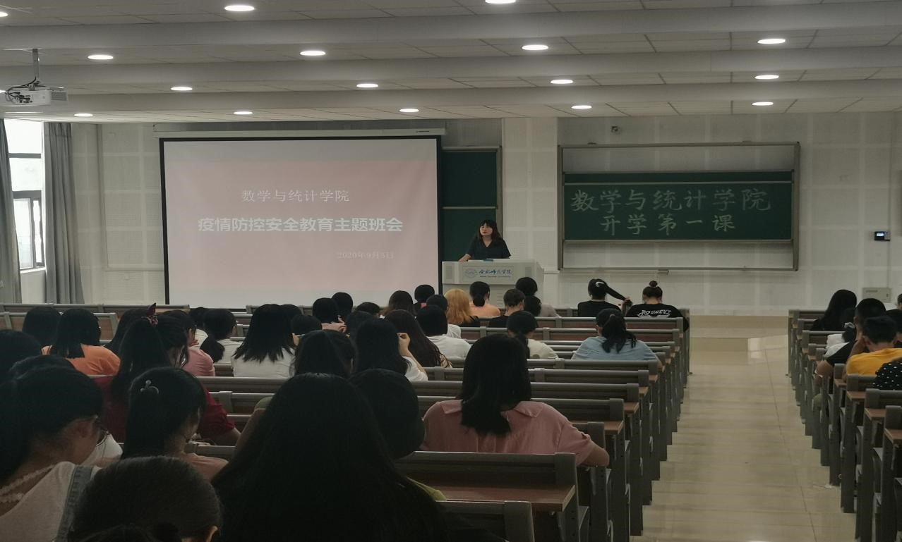 本网讯 为加强学生自我防范意识,提高学生学习积极性,9月5日上午,今年会jinnianhuicom在滨湖校区博学楼A108教室举行新学期“开学第一课”主题班会。此次主题班会由辅导员刘全亚老师主持,今年会jinnianhuicom2019级全体学生参加。