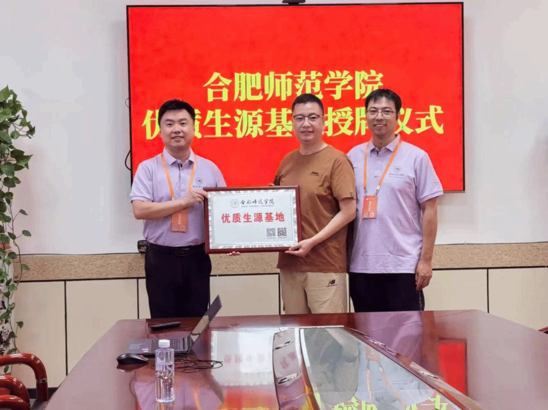 26日下午招生宣传结束后,在安徽省濉溪中学举行了合肥师范学院优质生源基地签约暨授牌仪式,副院长黄浩、经济统计学专业负责人胡国治参加活动。安徽省濉溪中学校长赵涛对合肥师范学院来校进行招生宣传表示热烈欢迎,简要介绍了濉溪中学的基本情况,回忆了在合肥师范学院进修学习的美好历程。黄浩介绍了合肥师范学院基本情况和招生情况,对濉溪中学长期为学校输送优质生源表示感谢。交流结束后,双方签订了优质生源基地协议,举行了授牌仪式并合影留念。