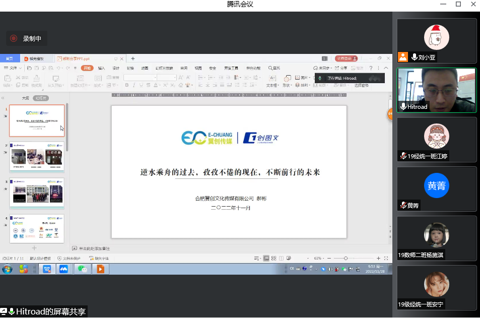 本网讯 11月28日上午,今年会jinnianhuicom开展了第二场2022年优秀校友创业事迹宣讲会,此次宣讲邀请到了校友郝彬主讲。2023届毕业生参加了会议,会议由毕业班辅导员刘全亚主持。