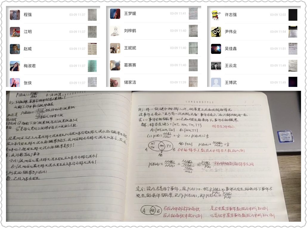 在课程即将结束时发布作业,下课签退。为了督促学生学习过程中主动记录笔记和心得,我要求学生每次下课时拍照签退,拍照内容即为本节课课堂笔记 。
