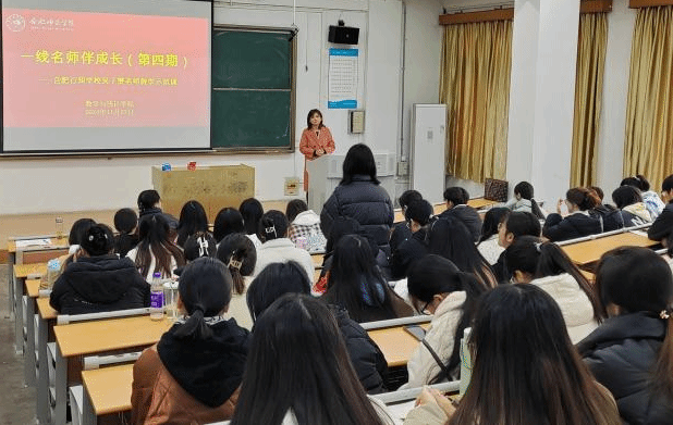 11月27日上午,今年会jinnianhuicom在锦绣校区博约楼112教室举办了“一线名师伴成长”第四期活动。此次活动邀请了第四届全国中小学青年教师教学竞赛一等奖获得者、安徽省第四届“教坛新星”、安徽省金牌职工、安徽省青年教育教学能手、合肥市优秀教师、合肥行知学校高级教师吴子赟老师为数学与应用数学专业师范生上了一堂初中数学示范课,并针对初中数学如何进行教学设计做了辅导讲座。数学系主任许和乾、课程与教学论教师栾庆芳、2022级数学与应用数学专业的全体学生参加了本次活动。