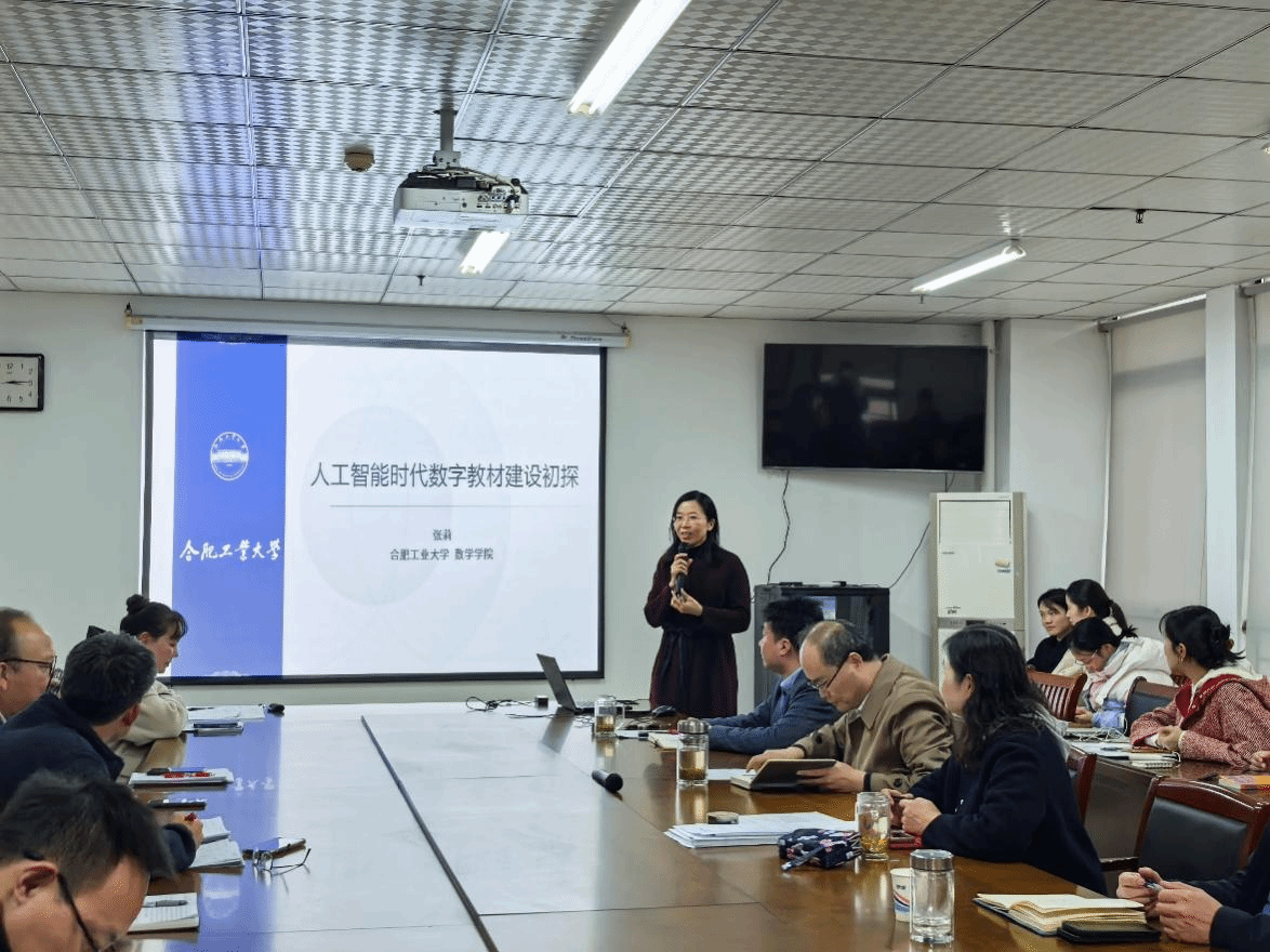 张莉处长强调了人工智能赋能高等教育的重要意义,以合肥工业大学数学学院《高等数学》课程数字教材为载体,从数字教材建设背景、组成模块和教材特色三个方面作了生动、详尽地介绍。报告结束后,张莉处长就学院教师关心的数字教材建设中的技术应用、资源整合、以及AI助教使用等问题,进行了耐心细致地解答与交流,现场气氛热烈。