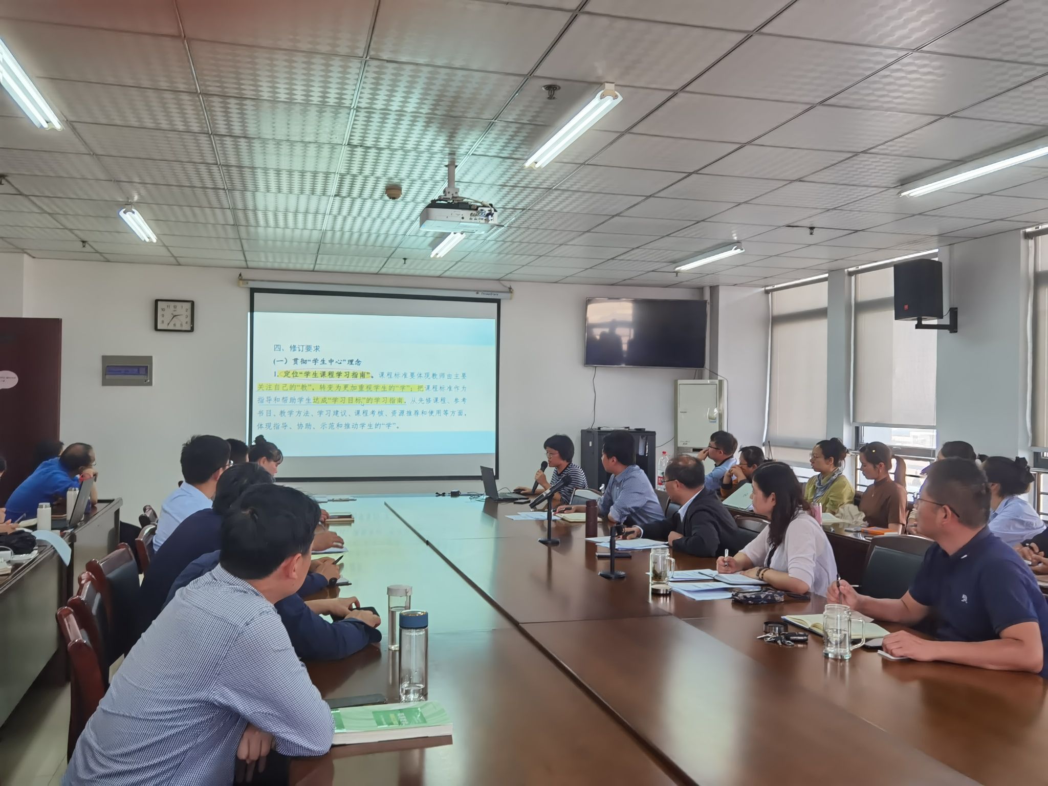 随后,副院长黄浩就课程标准修订工作进行了布置安排,并作了题为《新一轮课标修订文件解读与工作安排》的工作报告。黄浩从“为何修?”“修什么?”“ 谁来修?”“何时修?”四个方面进行了解读与介绍。他强调,新一轮课程标准的修订最重要的就是要坚持立德树人根本任务,落实“学生中心、产出导向、持续改进”的教育理念。报告中,他结合高教改革新趋势以及审核评估指标体系内涵解释,说明了新一轮课标修订的背景,并详细分析了在课标修订过程中如何做到“反向设计”与“正向施工”,对于如何贯彻“学生中心”和“产出导向”也进行了细致的分析与讲解,强调了课程思政融入、学生能力可评可测、教学内容的更新以及优化过程性考核环节的重要性。最后,他结合课程组组建情况明确了课标修订的任务分工和具体时间节点,希望所有老师齐心协力,按时高质量完成课标修订工作。