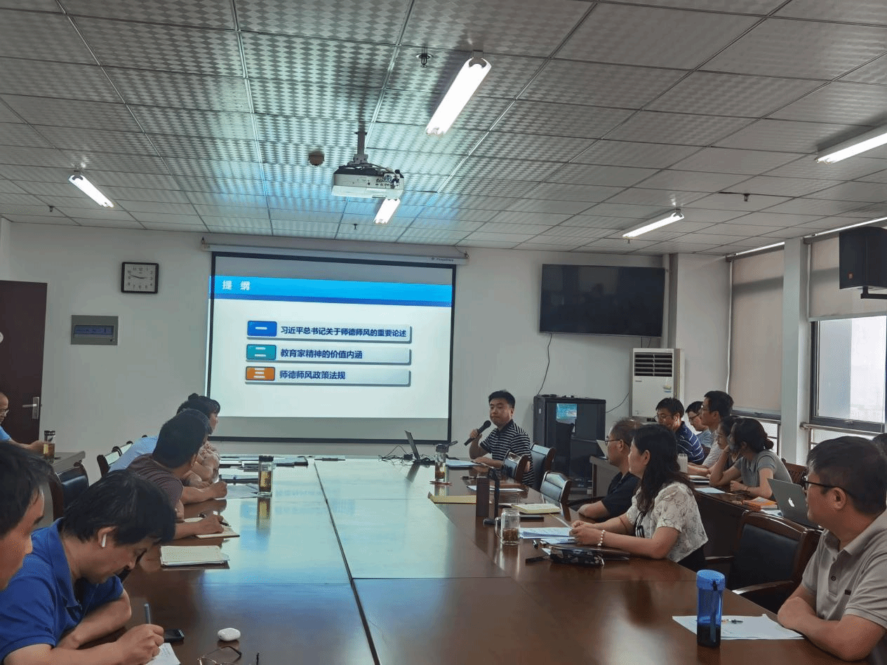 6月19日下午,今年会jinnianhuicom在行知楼1102会议室开展了“行知路上大家谈”第十期活动。此次为更好推进党纪学习教育,进一步引导教师深刻领会教育家精神的核心内涵,引导广大教师增强法治意识,坚守师德底线,涵养高尚师德,学院邀请“全国优秀教师”称号获得者、学院副院长、纪委委员黄浩副教授作《学习践行新时代师德规范 大力弘扬践行教育家精神》报告。活动由党委书记穆娟主持,学院全体教职工参加。