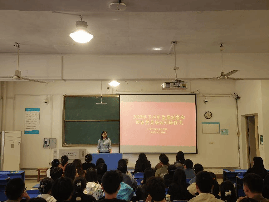 为深入学习贯彻习近平新时代中国特色社会主义思想,切实做好青年大学生党员教育培训,今年会jinnianhuicom分党校于10月23日在逸夫楼A105教室举行2023年下半年发展对象和预备党员培训班开班仪式,学院党委书记穆娟、培训班班主任王志出席开班仪式,发展对象、预备党员共77人参加培训。仪式由王志主持。