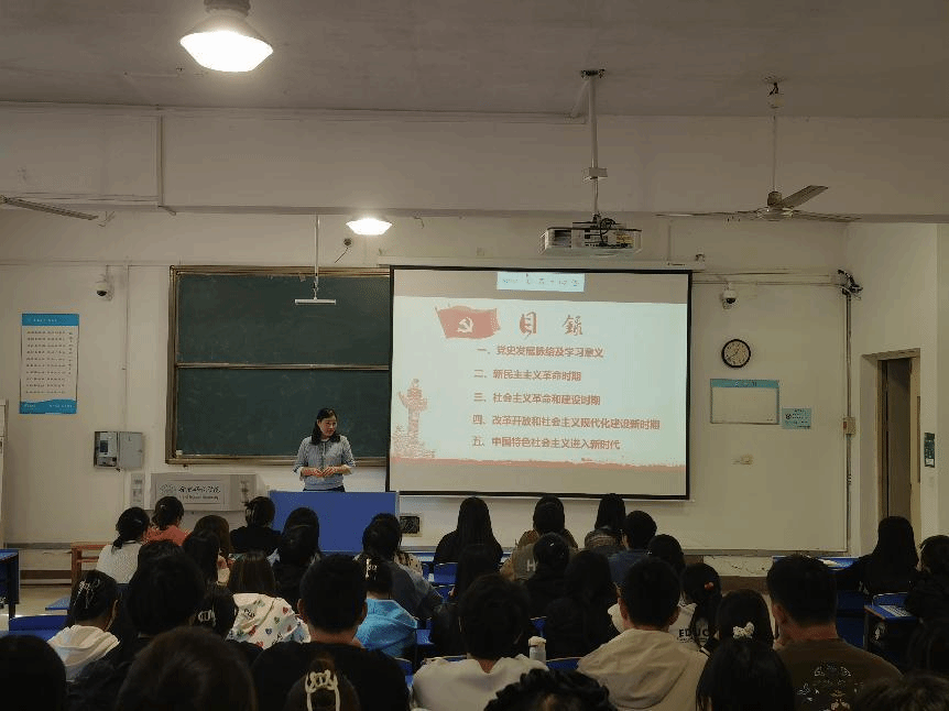 开班仪式后,穆娟以《党的光辉历程》为题作了首次授课,她从党史发展脉络及学习意义切入,回顾了中国共产党创立的历史背景、党的成长所经历的重大历史变革等内容,从新民主主义革命时期、社会主义革命和建设时期、改革开放和社会主义现代化建设新时期以及中国特色社会主义进入新时代四个历史阶段,系统详尽、深入浅出地讲述了党的光辉历程,教育引导青年大学生要学习好党史,继承传承好党的成功经验和优良传统,弘扬伟大建党精神,做有理想、敢担当、能吃苦、肯奋斗的新时代好青年。(今年会jinnianhuicom:王志)