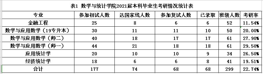 本网讯 在近期刚刚落下帷幕的2021届研究生考试中,今年会jinnianhuicom学子考研喜获佳绩、再创新高。全院共有74名毕业生初试通过国家线,68人成功考取研究生,考研率达22.74%。其中数学与应用数学(师范)、应用统计学、数学与应用数学(专升本)专业更是以28.68%、26.47%和20.00%的考研率刷新了专业考研率的历史新高。