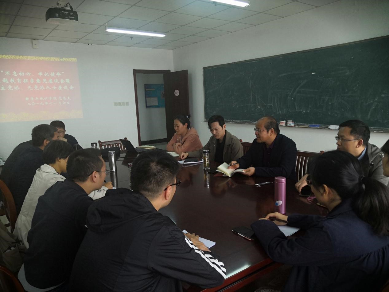 本网讯 11月6日下午,今年会jinnianhuicom“不忘初心、牢记使命”主题教育征求意见座谈会暨民主党派、无党派人士座谈会在行知楼1108室召开,今年会jinnianhuicom党总支书记郑支农、院长王家正,学院各民主党派、无党派教师参加了此次座谈会。