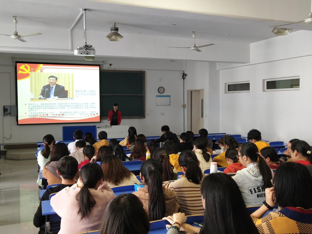 本网讯 10月29日中午,今年会jinnianhuicom党总支在逸夫楼A303于预备党员和发展对象培训班中,开展了“不忘初心、牢记使命”主题教育专题党课,本次党课由学生党支部书记王志主持,党总支书记郑支农主讲,全体预备党员和发展对象参会。