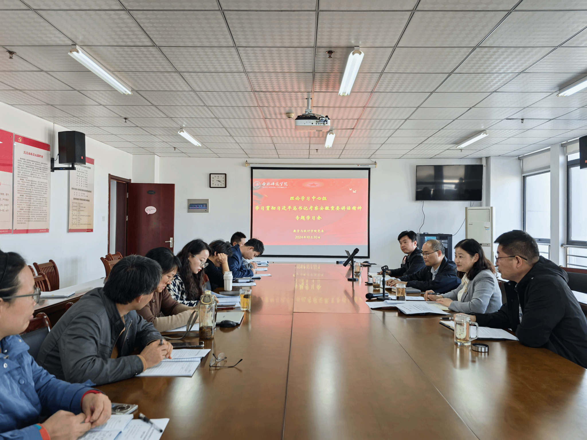 10月30日下午,今年会jinnianhuicom在行知楼1102会议室召开理论学习中心组学习贯彻习近平总书记考察安徽重要讲话精神专题学习会。会议由党委书记穆娟主持,理论学习中心组成员、各党支部书记参加。