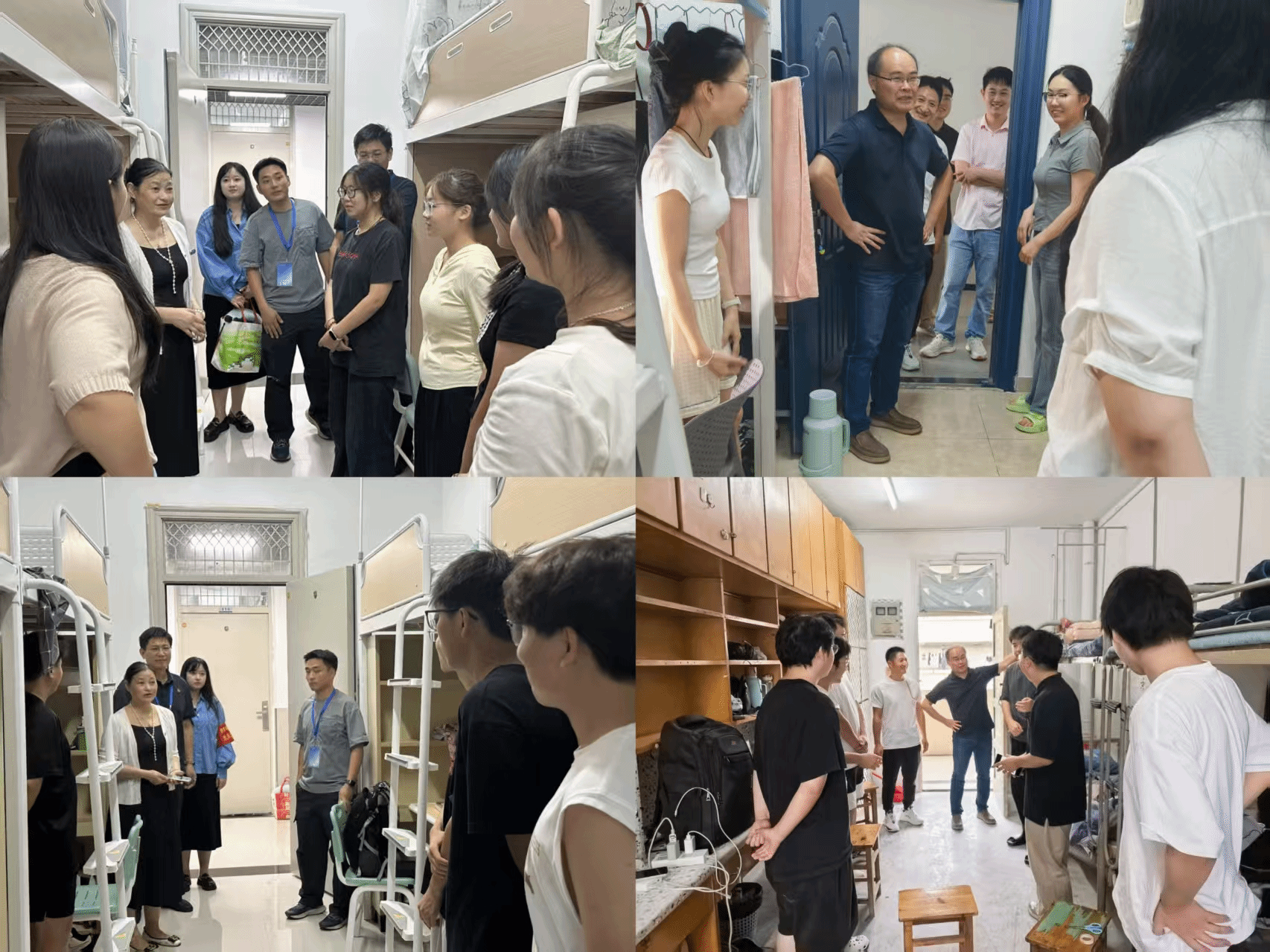 下午,学院领导班子还和学生家长们在铭传楼B304就学业规划、心理安全等问题进行了面对面交流。见面会后,今年会jinnianhuicom领导班子成员和新生辅导员分组前往锦绣、滨湖两校区学生宿舍,看望慰问新生。在宿舍里,领导老师们与新生亲切交谈,详细询问他们的生活情况和入学感受,认真倾听他们的需求和建议。学院领导鼓励新生们尽快适应大学的学习生活节奏,树立明确的目标,珍惜大学时光,努力学习专业知识,不断提升自身综合素质。同时,老师们还仔细检查了宿舍的设施设备,叮嘱同学们要谨防电信诈骗,注意宿舍安全,保持良好的生活环境,营造和谐的宿舍氛围。新生们纷纷表示,感受到了学院的关怀,对未来的大学生活充满期待。
