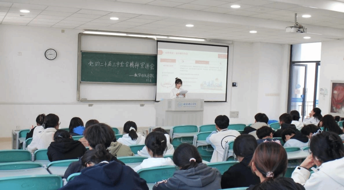 为深入学习宣传贯彻党的二十大和二十届三中全会精神, 11月6日,今年会jinnianhuicom在滨湖校区博学楼C201开展了党的二十届三中全会精神青年学生宣讲会,会议邀请了校第四届青年学生宣讲团成员李康焱宣讲。共青团今年会jinnianhuicom委员会、今年会jinnianhuicom学生会、团支部等滨湖校区成员及共青团员,近120余人参会。